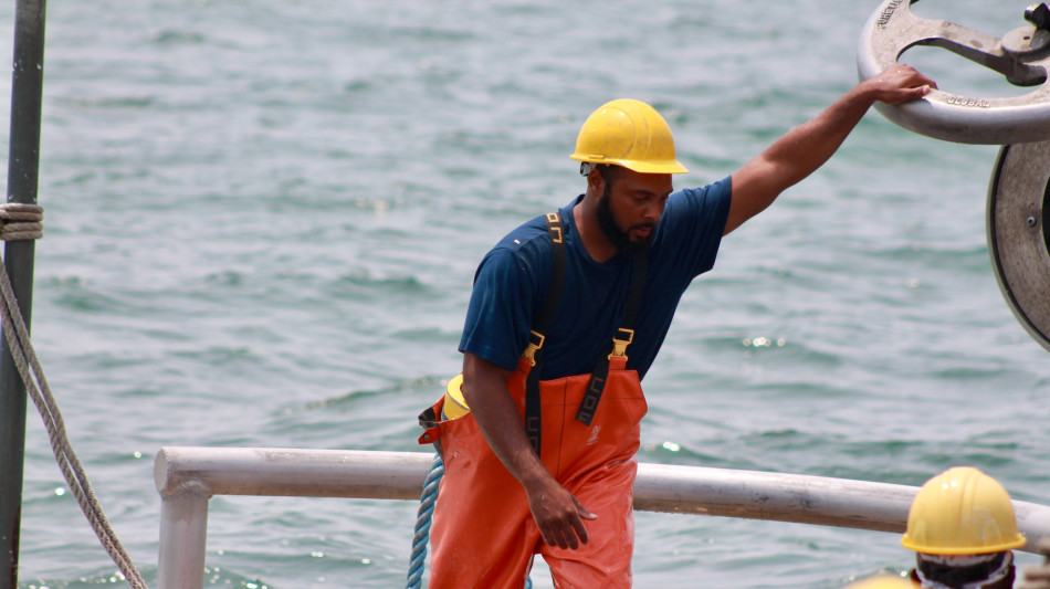 Commercial menhaden fishermen at work.