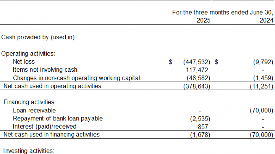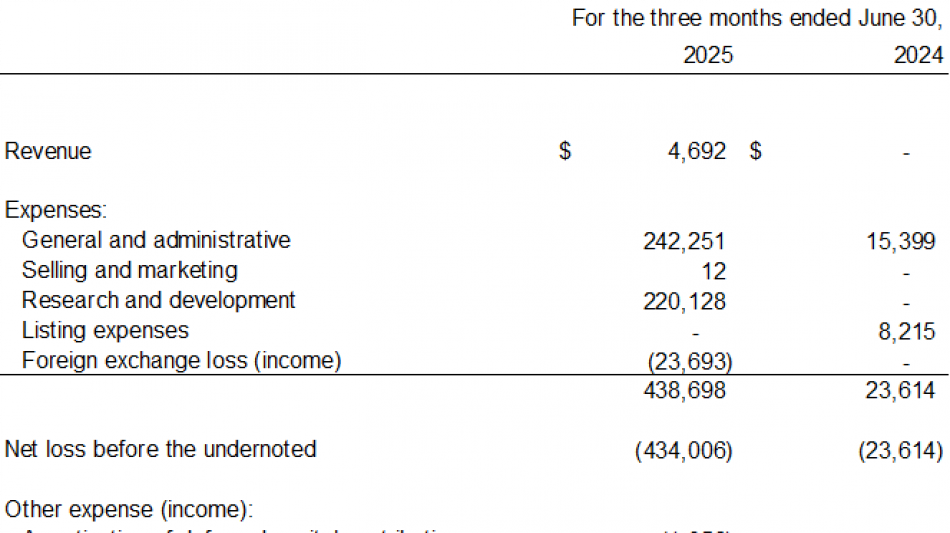 For the three-month period ended June 30, 2025, the summary of the financial results is as follows: