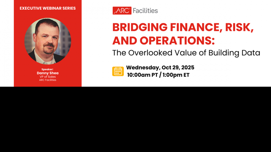 To address these growing pressures, ARC Facilities will host an essential webinar on Wednesday, October 29 at 10am PT/1pm ET -- Bridging Finance, Risk, and Operations: The Overlooked Value of Building Data. This session will reveal how smarter facilities management strategies can directly reduce exposure to risk, uncover hidden value, and demonstrate ROI across organizations.