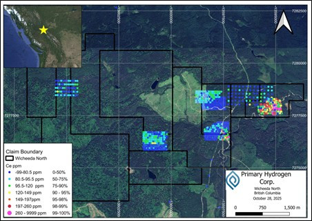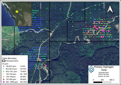 CALGARY, AB / ACCESS Newswire / November 7, 2025 / Primary Hydrogen Corp. (TSXV:HDRO)(FRA:83W0)(OTCQB:HNATF) (" Primary " or the " Company ") is pleased to announce the identification of two significant rare earth element (REE) anomaly clusters following completion of comprehensive geophysical and soil sampling surveys at its Wicheeda North REE Project (" Wicheeda North " or the " Project ") in British Columbia.