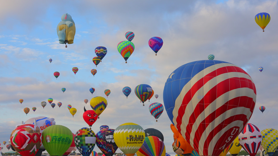 The ExxonMobil Albuquerque International Balloon Fiesta® is an annual festival of hot air balloons that takes place every October in Albuquerque, New Mexico, USA. It is the largest gathering of balloons and balloonists in the world. For details on events, schedule, and entertainment, visit our website and BalloonFiesta.com and follow us on Facebook, Instagram, Twitter/X, or TikTok.