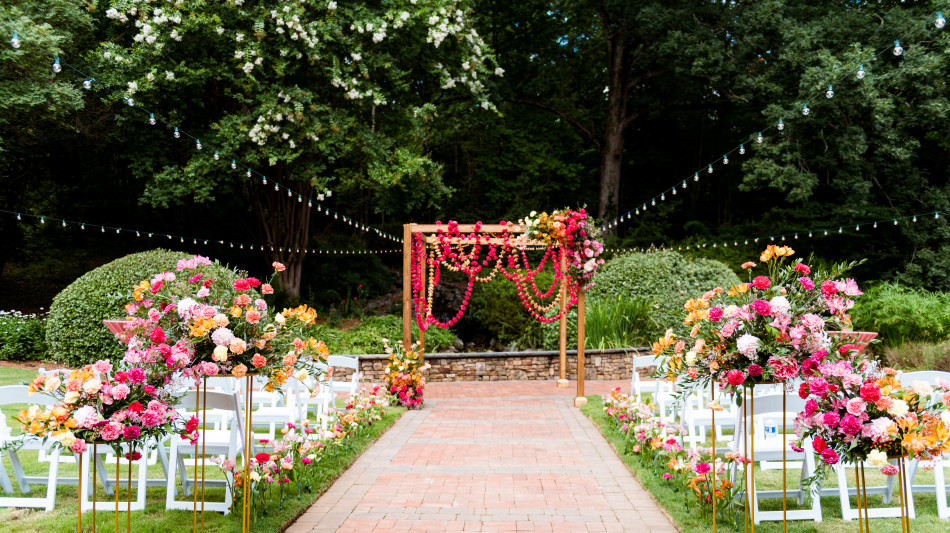 Natalie House (Lawrenceville, GA) (formerly Little Gardens): A sprawling seven-acre estate featuring manicured gardens, a waterfall and koi pond, a grand house with a ballroom, and a lush outdoor ceremony space, offering a magical garden wedding venue for couples seeking a fairytale aesthetic.