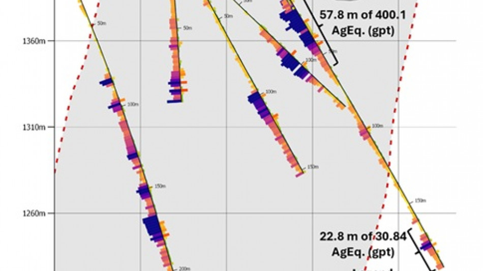 86.6 meters averaging 38.17 gpt AgEq (0.214 gpt Au, 23.19 gpt Ag), from 21.3m including 15.2 meters of 118.42 gpt AgEq (0.811 gpt Au, 61.68 gpt Ag)