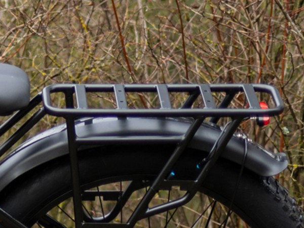 A high-carbon steel rear cargo rack is included as standard equipment, expanding practical utility for transport needs.