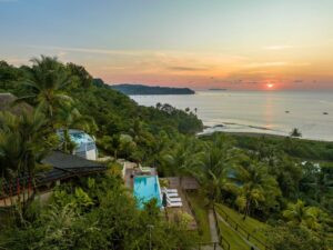 Perched high above Bahía Drake, The Tranquilo Lodge provides breathtaking panoramic views of the Pacific Ocean and surrounding jungle. Guests are welcomed into elegantly designed villas and bungalows, each featuring modern amenities, private terraces, and open air showers.