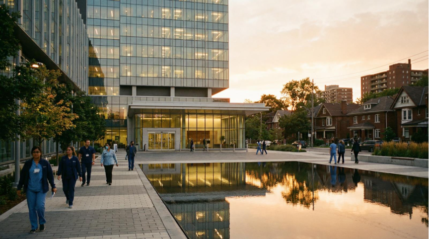 Toronto hospital campus - the frontline of Canada's essential worker housing crisis.