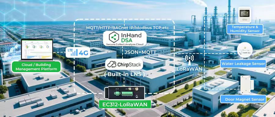 In smart building deployments, the EC312-LoRaWAN gateway delivers: