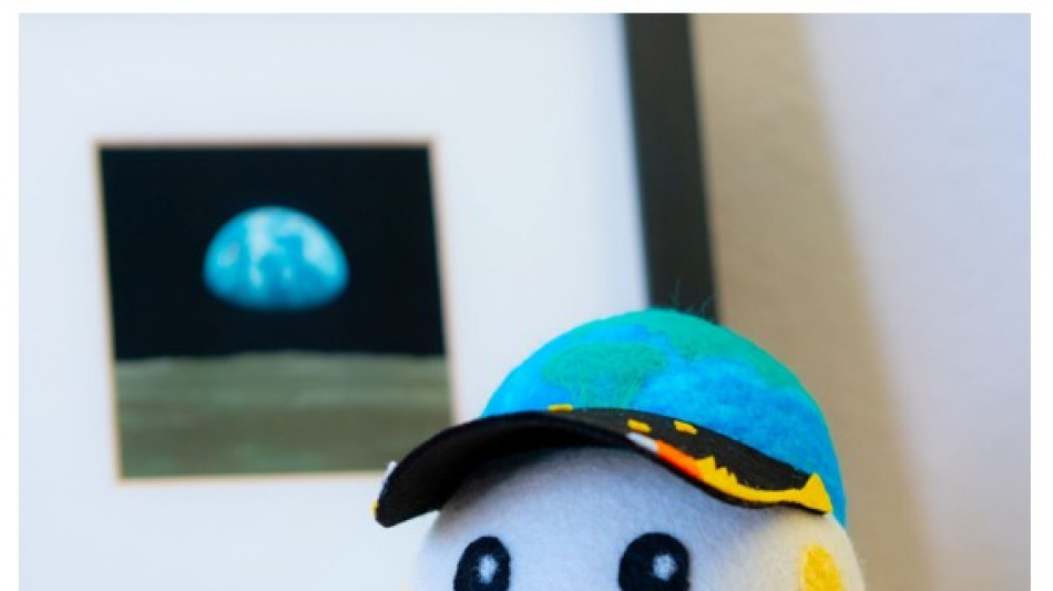 "Rise" - a round white plush with a hat featuring the Earth and a galaxy-and-rockets brim - was inspired by the iconic Earthrise photograph taken during Apollo 8, a moment Koch noted mirrors the spirit of the Artemis II mission itself.