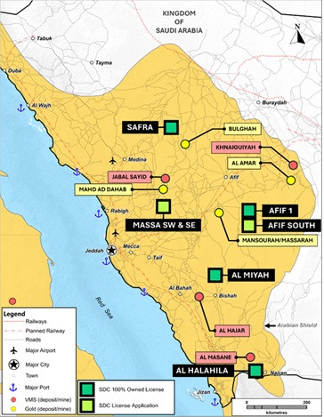 SDC has been actively adding to its project portfolio. The license applications for Massa SW and Massa SE have been accepted by the Saudi Arabian Ministry of Industry and Minerals ("MIM") and are awaiting grant. SDC has also been participating in the MIM Round 9 Auction and results of the auction will be forthcoming. SDC expects to add approximately 700 km² along proven VMS trends through these efforts.