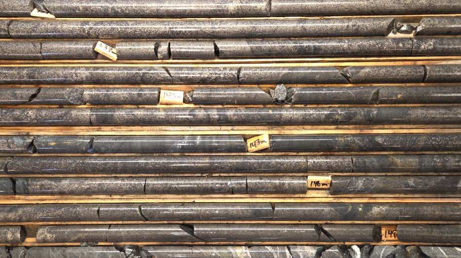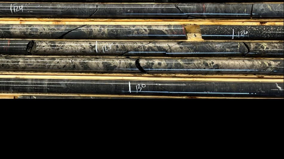 The campaign began with hole GW25-16 on the Granges Copper-Nickel-Cobalt Zone. This zone was previously tested by GW24-02, which intersected a 64.90 meter core interval grading 0.73% copper, 0.64% nickel and 0.05% cobalt, as reported in the Company's news release dated August 7, 2024. Hole GW25-16 cut mineralized core intervals over 11.47 and 4.40 meters respectively from 69.21 to 80.68 meters and from 124.60 to 129.00 meters. Hole GW25-16 was positioned approximately 40 meters east and 20 meters north of holes GW24-01 and GW24-02 and designed to test the eastward projection of the Granges Zone. Significant gold values were detected in the Granges zone ranging up to 3.31 grams/tonne ("g/t") gold over 0.50 meters in hole GW24-01 and 0.44 g/t gold over 1.95 meters in hole GW24-02. Multi-element assays including copper, nickel and cobalt as well as gold are for pending on 50 samples sawn from hole GW25-16. The lowermost mineral intercept is shown in Figure 2.