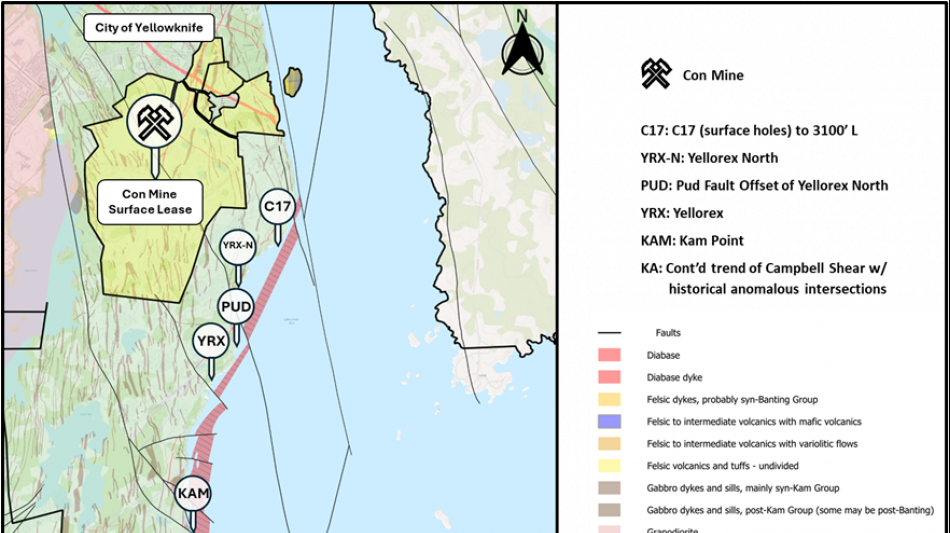 The YP and CMO properties lie on the Yellowknife greenstone belt, covering nearly 70 kilometres of strike length along the main mineralized shear system that hosts the former-producing high-grade Con and Giant gold mines. The Company's exploration programs have successfully identified significant zones of gold mineralization and multiple targets that remain to be tested which reinforces the Company's objective of re-establishing Yellowknife as one of the premier gold mining districts in Canada.
