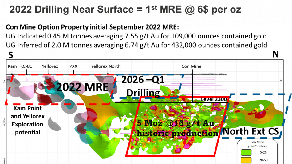 VANCOUVER, BC / ACCESS Newswire / October 27, 2025 / Gold Terra Resource Corp. (TSX-V:YGT)(Frankfurt:TX0)(OTCQX:YGTFF) ("Gold Terra" or the "Company") is pleased to provide an update on the 2025-2026 drill program targets along the past producing Campbell Shear (CS) in the Yellorex Trend south of the historic Con Mine. The Yellorex Trend drilling targets are where the Company has already outlined a Mineral Resource Estimate (MRE) in 2022 (See Note 1 further in this press release), and where there is potential for additional ounces to be added between surface and 700 metres depth.