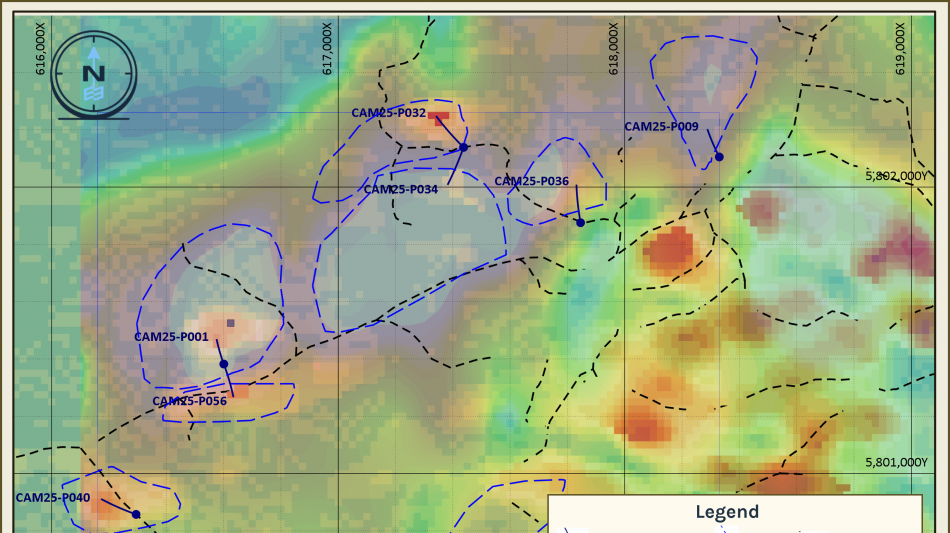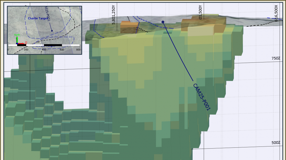 A cross section derived from an inversion of the aerial magnetic data for the highest priority drill target (CAM25-001) is shown in Figure 4.