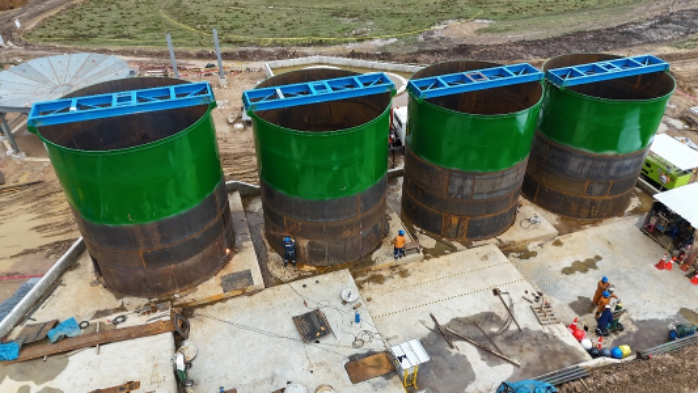 All civil works have been completed, and all reagent supply pumps are on site. The largest reagent preparation tanks have been fabricated and are being transported to the project.