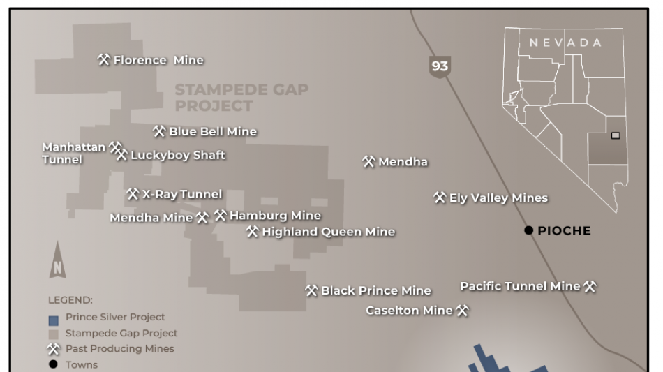 The Pioche mining district is one of Nevada's most well-known polymetallic camps, and historical records highlight the importance of the past producing Prince Mine within the camp. Previous production from the historic Prince Mine totaled 1.12 million tonnes grading 4.5% zinc, 100 grams per tonne ("g/t") silver, 2.8% lead, and 0.5 g/t gold, (Gemmill, 1970), mined from underground high grade sulphide replacement zones within limestone and near-surface oxidized manganese-rich material.
