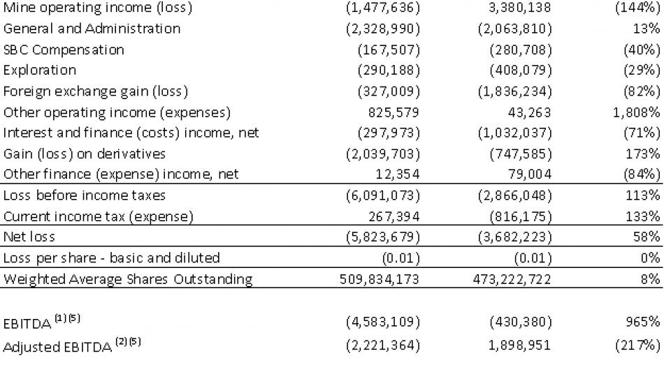 Silver equivalents are calculated using 87.70:1 (Ag/Au), 0.02:1 (Ag/Pb) and 0.03:1 (Ag/Zn) ratio for Q3 2025 and a 97.58:1 (Ag/Au), 0.03:1 (Ag/Pb) and 0.04:1 (Ag/Zn) ratio for Q2 2025, respectively.