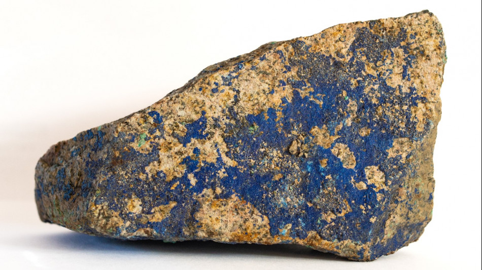 Figure 3-Azurite and malachite mineralization in lower trench beside collar of S-061