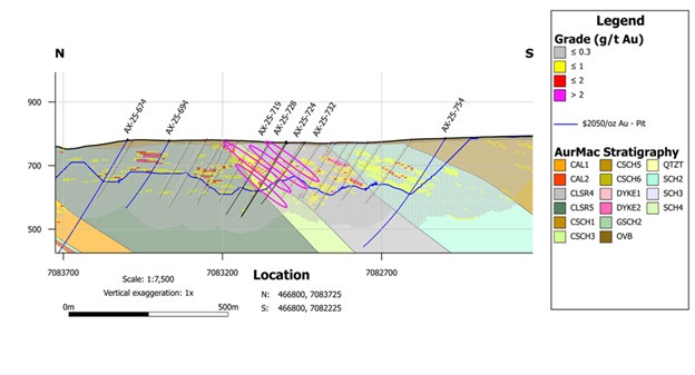 AX-25-724 - 4.60 g/t Au over 5.9m within 0.64 g/t Au over 55.4m; including high-grade interval of 14.90 g/t Au over 1.5m