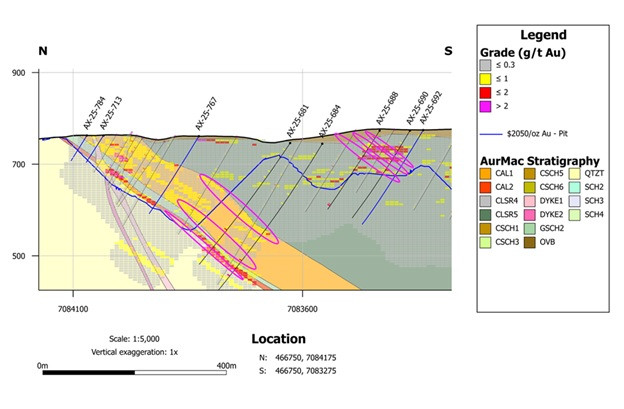 "We have successfully intersected high-grade intervals at the Resource pit edge with additional sheeted veins hosting coarse sulphosalts, sulphides and visible gold in follow-up step outs 100 and 400 m from known mineralisation, with assay results pending (holes AX-25-772 and -779 respectively, Figure 5)," said Tara Christie, Banyan President and CEO. "Our new geologically supported mineralisation model continues to provide opportunities to upgrade portions of our deposit by converting waste blocks to high-grade ore, reducing strip ratios within the conceptual pit and by expanding the mineralized envelope to add ounces."