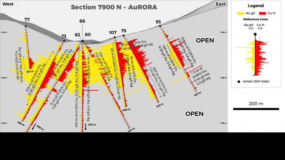 Highlights from Drill Holes Located on Sections 7900N and 8200N at AuRORA Include: