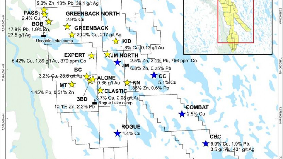 17 new base and precious metal showings discovered during the 2025 field program at the Epworth Copper-Silver Project, Nunavut
