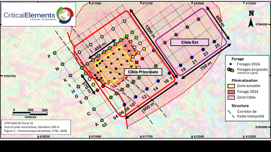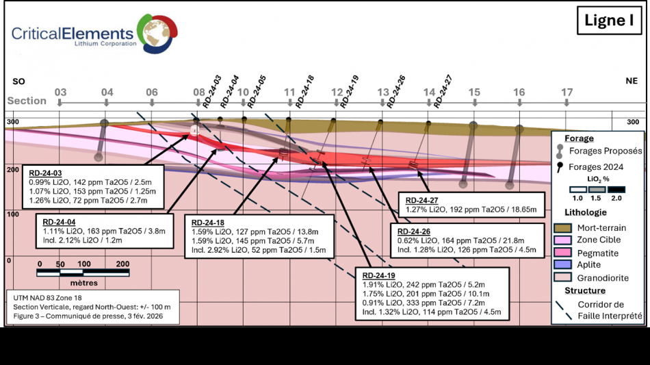 MONTRÉAL, QC / ACCESS Newswire / February 3, 2026 / Critical Elements Lithium Corporation (TSXV:CRE)(US OTCQX:CRECF)(FSE:F12) ("Critical Elements" or the "Corporation") is pleased to announce the details of its Phase 1 Winter 2026 drill program, including 10,000 meters of systematic drilling around the 100% owned Rose West Discovery ("Rose West"), located in Eeyou Istchee, Québec. Rose West is a near surface, sub-horizontal 10-40 m thick lithium-rich pegmatite intercepted by drilling over a 450 m x 370 m footprint area in the winter of 2024 (see Press Release dated April 15, 2024 and April 22, 2024). This drilling program is designed with the objective to eventually produce a resource estimate for Rose West, should the west zone prove to be continuous. Rose West is situated within 10 km of the highly advanced Rose Lithium-Tantalum Project ("Rose" or the "Project").