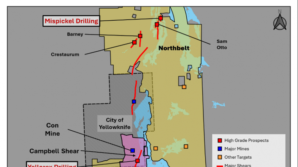 Four diamond drill rigs are currently active on the Yellowknife Project as shown in Figure 1. A total of ten drill holes has been completed to date, comprising eight holes on the Campbell Shear target south of the Con Mine and two holes at the Mispickel target within the Northbelt area north of the city of Yellowknife.