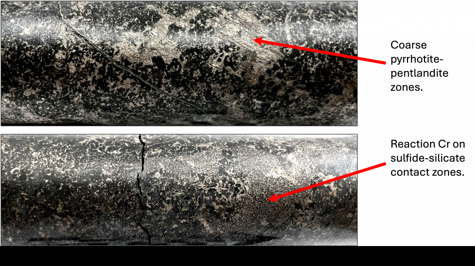 High-grade zone: 4.9 m @ 0.72% NiEq from 85.6 m as 0.43% Ni, 0.29% Cu, 0.043% Co, and 0.40 g/t 3E.