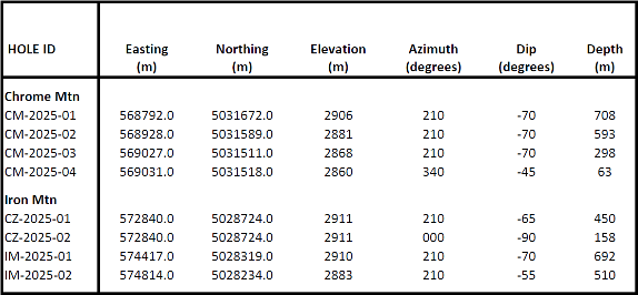 Assays remain pending from drilling at the Chrome Mountain and Iron Mountain HGR deposit areas.