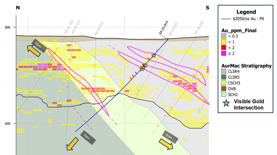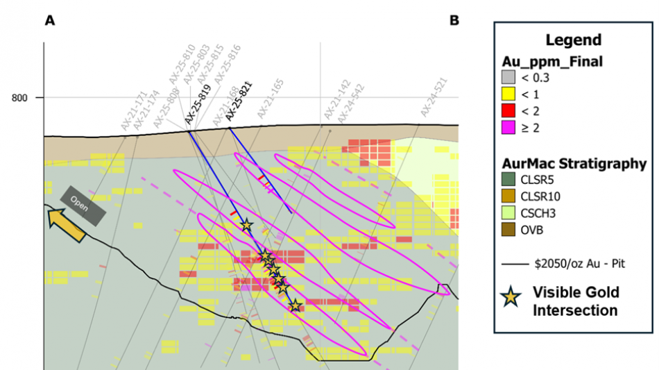 AX-25-819 - 1.82 g/t Au over 26.2m and 4.64 g/t Au over 7.7m, within 1.06 g/t Au over 49.6m; includes high-grade interval of 19.90 g/t Au over 1.5m;