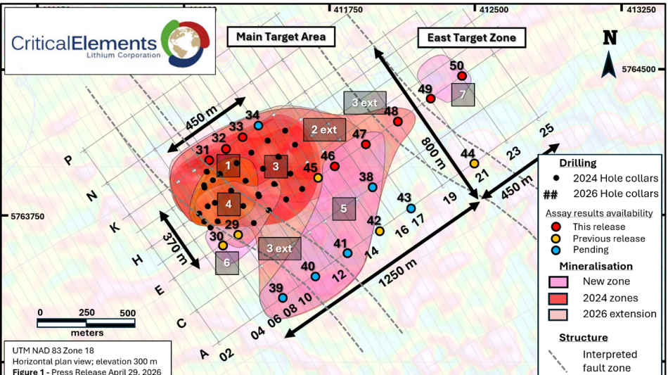 MONTRÉAL, QC / ACCESS Newswire / April 29, 2026 / Critical Elements Lithium Corporation (TSXV:CRE)(US OTCQX:CRECF)(FSE:F12) ("Critical Elements" or the "Corporation") is pleased to provide assay results and an update on its Phase 1 Winter 2026 drill program, at the 100% owned Rose West Discovery ("Rose West"), located in Eeyou Istchee, Québec.