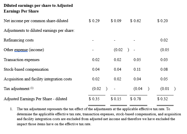 Das EBITDA, das bereinigte EBITDA, die bereinigte EBITDA-Marge und das Ergebnis pro Aktie enthalten nicht die Barausgaben, die wir für die Integration erworbener Unternehmen in unsere Geschäftstätigkeit aufgewendet haben, da dies ein notwendiger Bestandteil einiger unserer Akquisitionen ist.